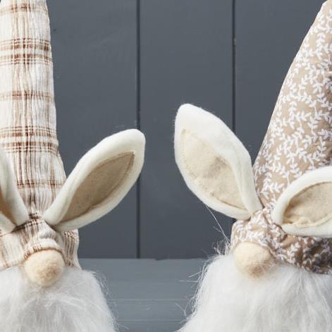 Tall gonks dressed in a floral fabrics—whimsical, cosy, and full of seasonal character.