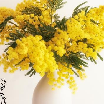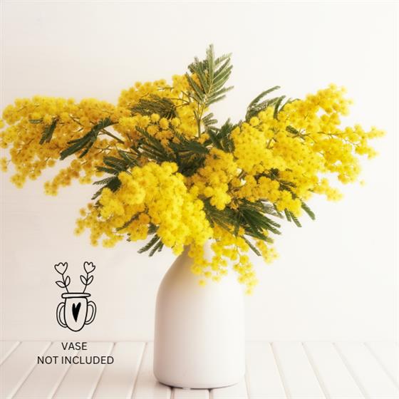 Simply Mimosa, 3-5 stems making a bunch, simply wrapped in paper for presentation and ready to go in a vase for sweet scented Spring joy.